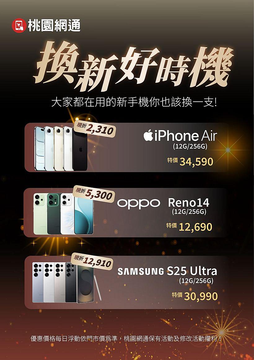 桃園網通推出多款人氣新機限時優惠,趁現在換上你的新夥伴,一起迎接嶄新的日常!