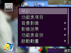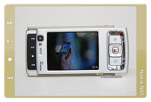 如果僅從外觀設計來看,「雙滑蓋設計」是 N95 引人注目的焦點之一,把螢幕面向自己並將 N95 逆時針打橫之後,並將上滑蓋往右推開之後,除了可在螢幕左側看見一組音樂播放面板之外,螢幕介面亦馬上由直立模式轉換成橫向模式 ( 此功能選單呈現方式亦可透過機身上的「多媒體鍵」來顯示 )。