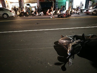 ▲ 路上巧遇發生有醉漢駕駛機車追撞前車的事故,突然間覺得我好像有柯南的特異功能,幸好現場都是輕傷。