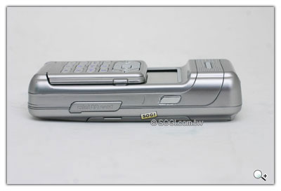 這一邊的按鍵按一下手機會出現時間和日期和類似鏡面的畫面,不過聽說微妙之處在於如在攝影模式,有來電並不會立即顯示其電話號碼,按一下這個鍵才可顯示來電號碼,當當神奇的一個按鍵,另外一個則是 miniSD 的插槽。
