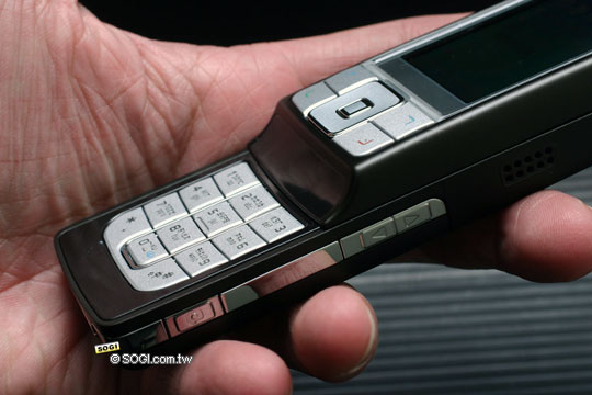 上圖我們可以看得很清楚其右側面的設計,音量鍵以及相機鍵都在亮銀色的金屬側條的一環,金屬亮面映出周邊的手及環境色彩,增添一份新奇的元素。而從上圖也可以看到 6270 的弧形推蓋設計,擁有與眾不同的設計。