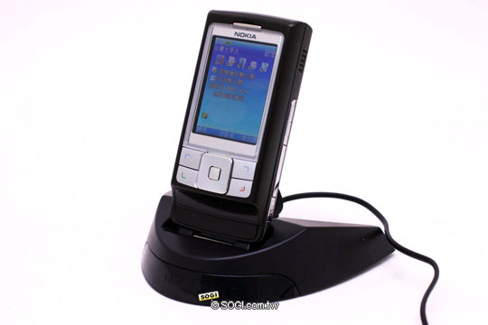 接下來我們看一下盒裝的配件,現在購買 6270 就會在盒裝內除了附一個 HS-23 立體聲耳機外,還有一個僅 6270 可以使用的多功能手機座,目前尚無其他款諾基亞手機可支援,它可支援許多功能,除了可替手機充電之外,此多功能手機座還是一台