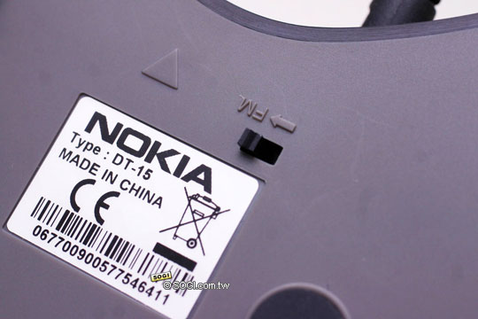 我們將手機放到手機座後,插上電源然後再開啟底座下的 FM 開關就可開始接收廣播訊號,當然手機內也要同時開啟收音機的程式才可以聽。