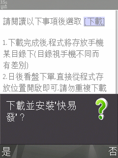 如上面二張圖,太平洋證券快易發手機看盤下單軟體 可分為免費看盤一個月試用版與正式版,唯一的差別僅在於能否執行下單,用戶如需使用到下單的部份,則必須先開立太平洋證券公司的電子交易戶之後方可使用。當下載申請程序填寫完畢之後,太平洋證券 將會透過簡訊的方式將軟體傳送至手機裡,整個安裝下載過程非常簡便。