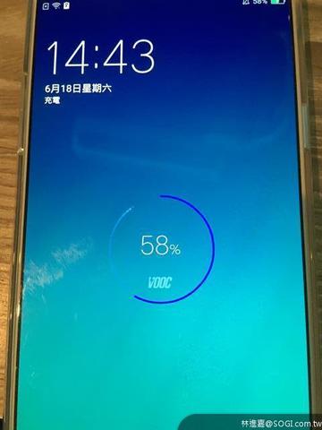 VOOC閃充技術也是一個重點,關於這點我只能點個讚,充電的速度真的很快!!