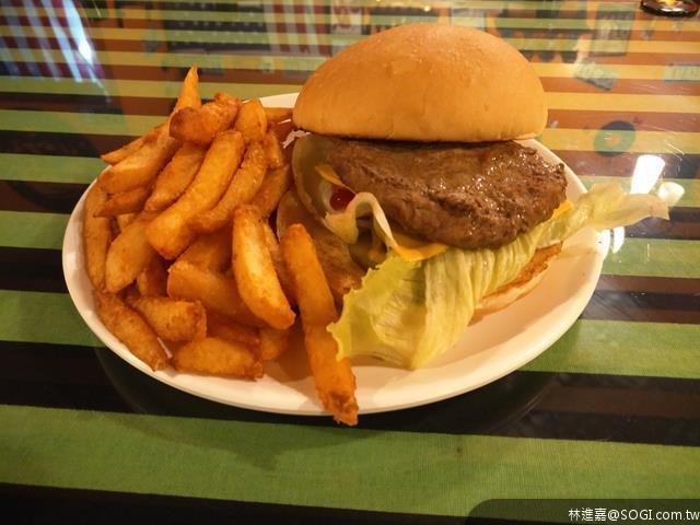 登登!!原味牛肉漢堡來啦!還有超大份薯條跟飲料無限暢飲,不用巨無霸都可以吃的超飽的啦!