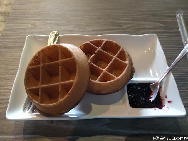 店家自製的果醬搭配外酥內軟的鬆餅再加上美式冰咖啡真的是好幸福啊~~~