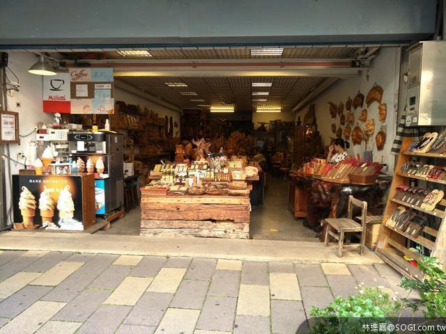 在木雕博物館旁的老街有許多的木雕藝品店,也有賣一些童玩、樟木檜木等精油的商品