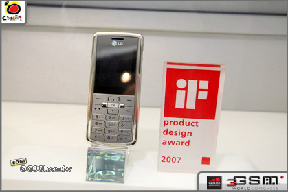 在 3GSM 會場中令人真正吃驚的是這款尚為發表的 LG Shine 直立版本,可以看到旁邊同時展示了 iF 2007 產品設計大獎的牌子,雖然型號和資料尚未得知,但是光是質感和設計上都令人無話可說。