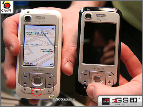 看準行動導航市場的魅力,諾基亞於 2007 巴塞隆納 3GSM 展中展示一款專為個人行動導航所設計的專屬手機 Nokia 6110,消費者只要按下專屬的導航快捷鍵 ( 上圖紅圈處 ),即可輕鬆體驗行動導航樂趣。Nokia 6110 預計於 2007 年 5 月左右上市。