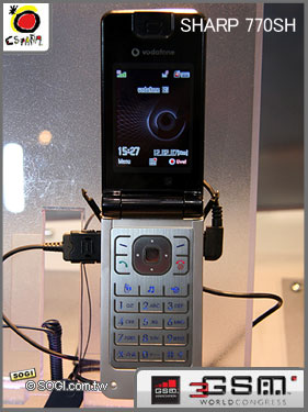 SHARP 770SH 是 Vodafone 的客製化手機,主要針對歐洲市場推出,是入門級的 3G 手機。外型和台灣去年底引進的 WX-T81 有些相似,都是薄型、簡約設計的 3G 手機。此一造型最早推出的日本市場 (705SH),不僅大賣而且大玩色彩,相較起來歐洲和其他市場的配色,相對保守許多。