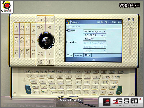 WS007SH 為側邊滑蓋式設計,和此系列首款的 WS004SH 大異其趣。同時,WS007SH 也是日本首見的側邊滑蓋智慧機,但顯然此外型在台灣可能已經膩了。其將一般電話用按鍵跟操作商務功能的 QWERTY 鍵盤獨立出來,兩種使用習慣都保留了,不過在體積方面則是付出代價,手感就差了些。