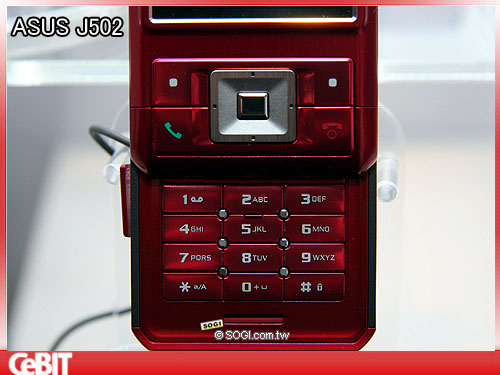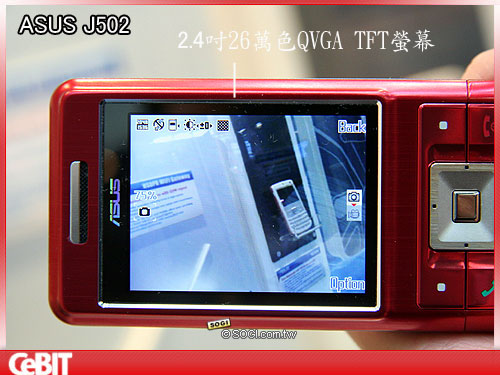 如果說 J501 適合成熟穩重的男性使用,那麼 J502 就可以說是款男女皆宜的機種,鮮麗的亮紅外型,加上薄型滑蓋設計,讓手機本身即顯得搶眼。J502 採用的是金屬材質,滑開闔上十分緊密貼合。外型上比較特別的,就是鍵盤上有六個小鋼珠造型設計,除了讓按鍵更為順暢,在造型上也顯得特殊許多。而原本 J501 所強調的多媒體娛樂功能,在 J502 上只有升級沒有扣分;為了因應多媒體功能的需求,把螢幕由 2.2 吋提升到 2.4 吋,解析度則仍維持 240x320 pixels,如果要觀賞影片不是問題。