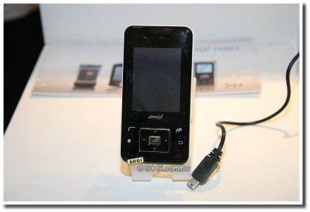 Amoi E72是此次展出中最入門的一款。100 x 44.8 x 14.8mm的身型,重量也僅有 86g,配有 176 x 200 pixels 的 2.0 螢幕與 130 萬畫素 COMS 相機。同時支援 A2DP、藍芽 1.2、Micro SD 記憶卡擴充等。