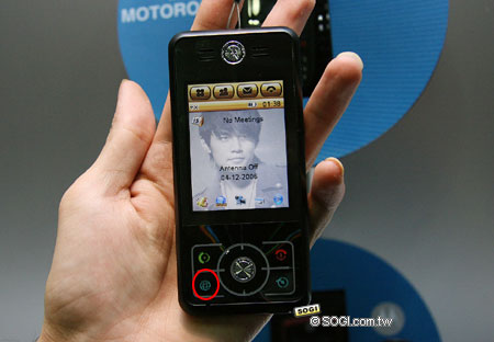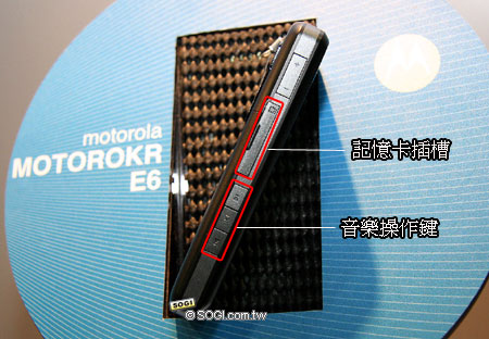 仔細看上圖 MOTOROKR E6 的外型,可以發現特別在按鍵「音符」處圈起紅圈,這是因為在此次 ITU 展中,E6 出現兩種不一樣的按鍵版本,台灣市場將推出「音符」按鍵介面版本的手機,而中國大陸市場則會推出另一種按鍵版本,不過這僅是按鍵介面設計不同而已,在功能上,這二款 ROKR E6 其實都是一樣的。