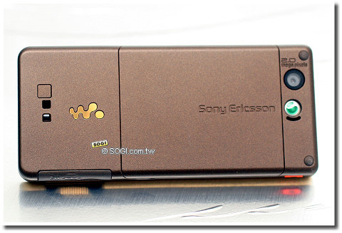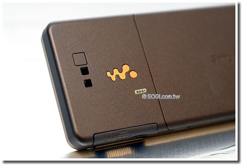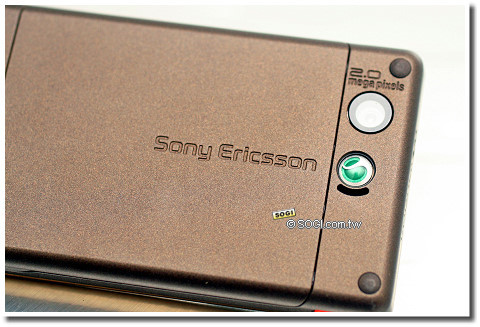 小巧的 200 萬畫素相機鏡頭,沒有多於綴飾,下方也只有 Sony Ericsson 的綠色商標。機背的大地風,與正面璀璨金色的高調,截然不同又互相融入。