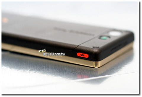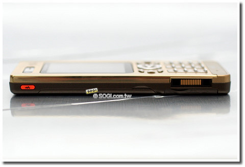 僅止於換色上市,所以 W880i 耀金色機身二側也有快捷鍵,如 Music Player、拍照快捷鍵、M2 記憶卡插槽、USB 連結埠…的簡單配置。而且,也隨機附贈 1GB 的 M2 記憶卡。