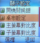 ELIYA S601 & S611 兩者 65536 色的螢幕色彩以及 128*128 pixels 的解析度算是尚可,內螢幕採用六宮格動畫設置,桌布內建有五種選擇。而外螢幕就只能選擇設定對比度,不能選擇桌布設置。