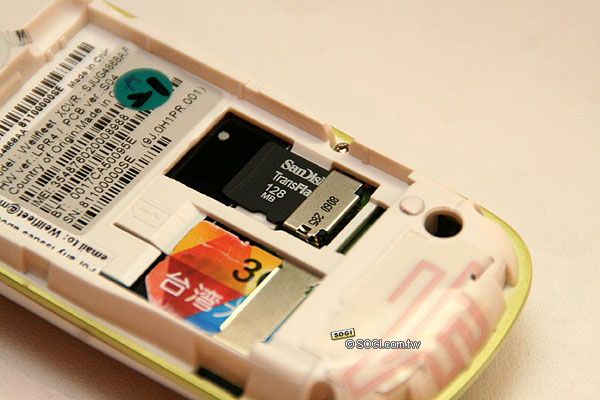 將背蓋整個拔除,再將電池取出,才可以看到 microSD 的插槽 ,也代表 VE 538 無法隨時隨地進行記憶卡的擴充,必須要將電源關閉才行,在使用上並不是那麼方便。記憶卡最大可擴充至 4GB。