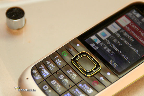 透過電信業者與 VE538 所提供的 3G 行動網路服務,可讓用戶享受不用帶電腦出門,也能隨時沉浸在上網分享的無限樂趣中,尤其是 MOTO VE538 所內建的「網路社群專屬鍵」(上圖五向鍵左側),只需輕鬆一按,就可以立即連上 ShoZuTM 社群網域。
