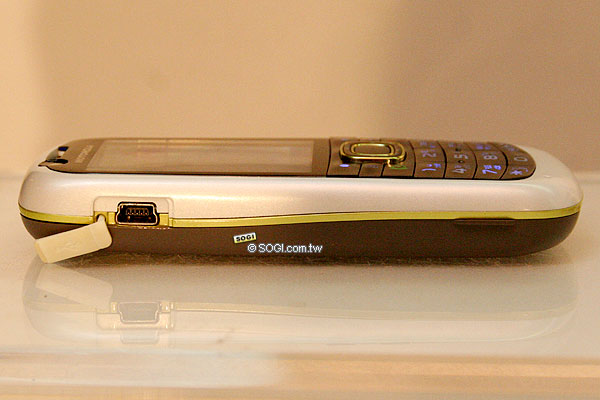 ▲ 在手機的左側上方設有 Mini-USB 插槽,傳輸音樂影音更便利。