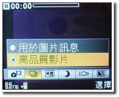 手機在拍照介面中能夠隨意切換相機和攝影機模式,使用者還能夠進一步設定拍攝「高品質影片」或者是「用於圖片訊息」就是大家熟知的 MMS 多媒體簡訊,能夠豐富用者畫面的呈現,及檔案的存取方式。而「關閉麥克風」選項則可以關掉攝影機的錄音功能,拍攝無聲的情境劇。