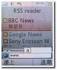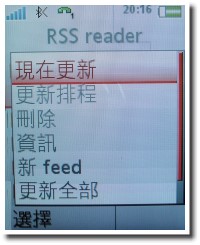 新聞閱讀器「RSS reader」功能內建於「訊息」選項中,使用者可以選擇「現在更新」或者是選擇「更新排程」及「更新全部」等。此外,使用者也能夠輸入網址來設定新的 RSS 頻道,隨時增加閱讀器的內容。