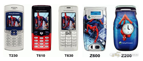 現在,您是否也開始幻想著自己也像片中蜘蛛人一樣能吐絲、飛簷走壁呢?Sony Ericsson為順應廣大蜘蛛人迷的期待,特別推出五款蜘蛛人限量手機,包含直立式手機T230、T610、T630,以及折疊式手機Z200、Z600。
