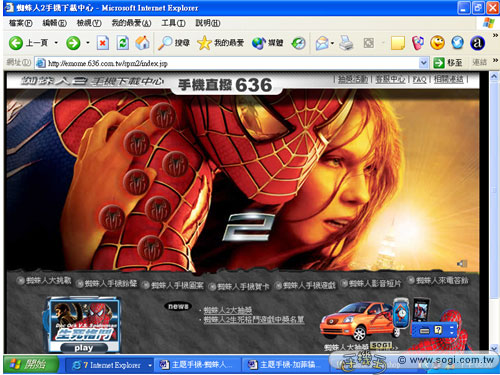 下載網址網址:http://emome.636.com.tw/spm2/index.jsp,依下載的項目不同收費,目前該網址可供下載蜘蛛人手機鈴聲、手機圖案、手機遊戲、手機賀卡、影音短片與手機來電答鈴,如此多有關蜘蛛人主題的下載,真的是要消費者真正體驗千變萬化的影音享受!
