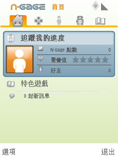 下載安裝並開啟 N-Gage 之後,主功能操作畫面與先前手機內建的試用版完全不同,在正式版上可以看到一些個人化帳號設定,此外,也已開始計算遊戲點數等功能。