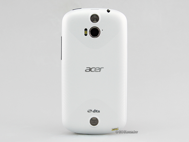 ▲Acer Liquid E1 機身背蓋採霧面防滑凹圓點設計,上下方分別配置了喇叭,搭配內建 DTS Sound 劇院音效,讓用戶在欣賞多媒體影音或玩遊戲都能體驗高品質的音效。