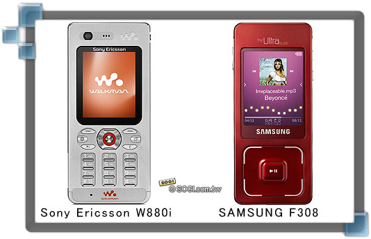 而 SAMSUNG 也不惶多讓,F308 的獨特雙面設計,手機和 MP3 獨立使用的全新介面,觸碰式操作、長達 42 小時連續音樂播放、可顯示專輯封面的音樂圖書館,甚至連 SAMSUNG MP3 團隊都讚不絕口的播放音質,也在手機王熱門排行榜中居高不下。