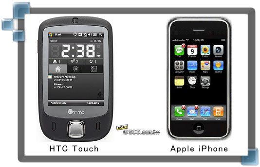 當 iPhone 在年初發表這種技術後,HTC 也針對 iPhone 推出了 Touch,不但搶先一步上市且價格更為親民。Touch 採用大家所熟悉的 Windows Mobile 系統,TouchFLO 的介面,能啟動由聯絡人、媒體、應用程式所組成的 3D 動畫介面,透過拇指的上下左右滑動來操作,比傳統的 PDA 手機更易於操作。Touch 的推出,也被視為是要對抗 iPhone 的強力武器。
