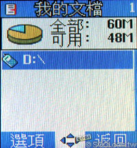 功能平實的兩款手機皆不具備外接記憶卡功能,T128 如型號一樣內建 128MB 記憶體,HTG-908 則擁有 60MB,以一首 MP3 歌曲為 5MB 的方式去計算,T128 約可存放 25.6 首,HTG-908 則僅能儲存 12 首,相差 13 首之多。下圖左為 HTG-908 之記憶體容量圖、下圖右則是 T128 之記憶體容量圖。