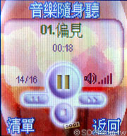 播放介面也頗為雷同,並同樣可邊聽 MP3 邊同時操作其他功能,將好聽的 MP3 歌曲作為背景音樂。播放音質來論,兩款手機的表現均有一定水準,將音量調至最大也未有破音現象。但 T128 略有雜訊,HTG-908 則是聲音層次混沌,聽搖滾(陶吉吉-鬼)時會有背景鼓聲與人聲混在一起的情況。