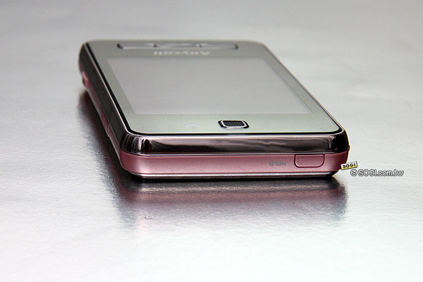 Samsung F488 各方面的功能和規格評價都不錯,為目前超人氣的全觸控式介面手機。比較需要注意的是 F488 拍照時螢幕預覽感覺有點糊,這項缺點在粉紅機尚未獲得改善。還有,因為不支援手寫輸入,只能在螢幕上點選注音符號,在螢幕上選字,感覺使用上不如實體按鍵和手寫輸入順手,購買前最好先試用看看,是否符合自己的需求。接著,來看看 F488 粉紅機的外型細部欣賞。
