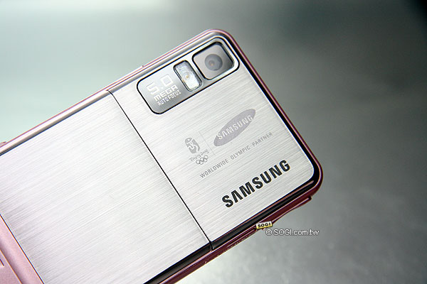 ▲ 500 萬畫素鏡頭的下方有奧運和三星 LOGO,Samsung 一向是奧運的合作夥伴。