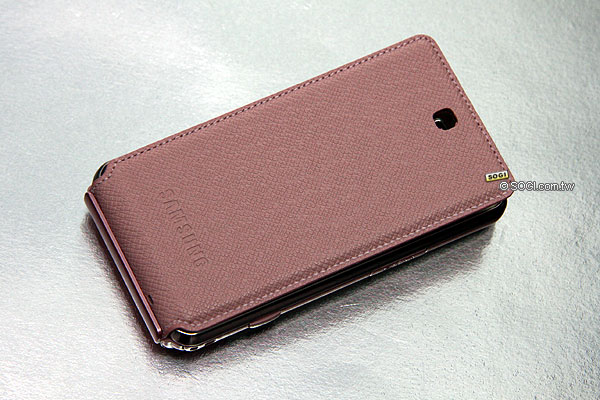 ▲ 粉紅色皮套蓋上時正面的模樣,有寫 SAMSUNG 的 LOGO。