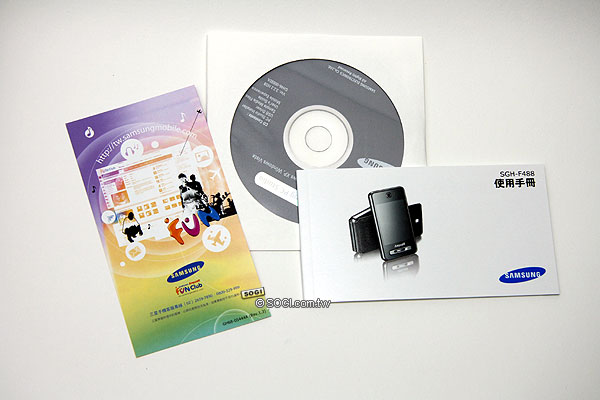 ▲ 盒裝比旗艦機 U908 還要豪華,但的確 F488 的售價也比 U908 高出約 1000 元。盒裝上寫著 Touch so fun!正是 F488 的廣告詞,為近期三星操作性上有全面突破的一款手機。
