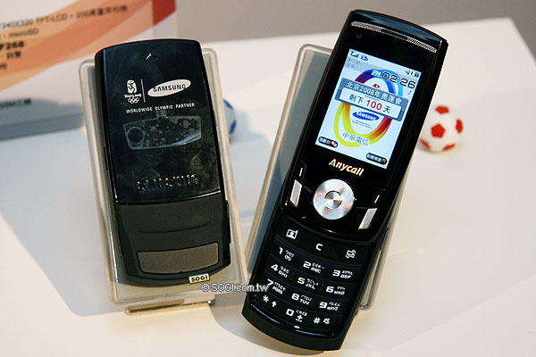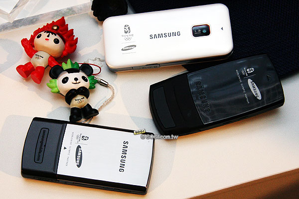 2008 北京奧運已經進入倒數 100 天了,四年一度的全球盛事即將來臨,為了紀念首次由華人舉辦的奧運會,台灣三星與中華電信合作推出三款奧運手機 J208、F268、L778。這三款手機全都內建奧運開關機動畫、桌布和鈴聲,除了 J208 已經在去年就上市並另推出新款白色之外,F268 和 L778 都是全新上市的手機。其中 J208 和 L778 也善加發揮 3G 高速傳輸的特性,在桌布下方的兩邊內建 emome 影視台及遊戲台快捷鍵,直接進入奧運機專屬的相關客製化加值服務。