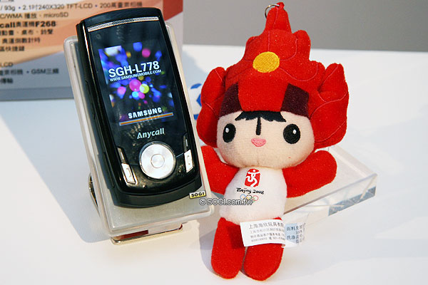 Samsung L778 預計 6/1 上架,中華電信與三星一共準備 5,000 組 「歡歡」福娃掛飾,提供給於中華電信窗口購機的用戶,送完為止。Samsung L778 搭配 3G 183 型為 6,790 元、383 型為 5,990 元、583 型為 5,490 元、983 型為 4,490 元。