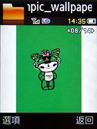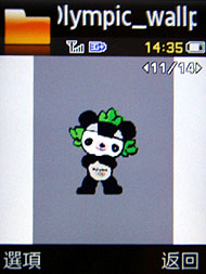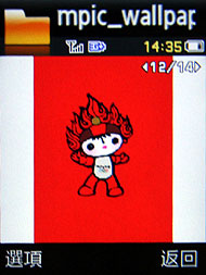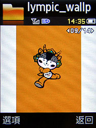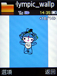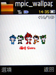 Samsung 三款奧運紀念機 J208、F268、L778 皆內建 2008 北京奧運吉祥物福娃的桌布,還有開關機動畫和來電圖片等,其中 F268 和 L778 還有倒數奧運計時的小程式。
