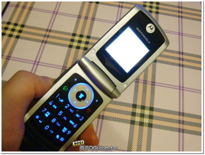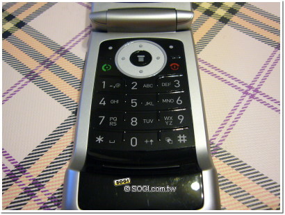 翻開 W220 上蓋,首先看到的就是印有 MOTO Logo 的聽筒及 1.5 吋螢幕,由於採用 CSTN 材質,所以成色效果不如一般 TFT 產品;數字鍵部份,如同 V3 般排列,但以塑膠按鍵取代金屬蝕刻設計,可看出 W220 是款以中低階市場為訴求的產品。