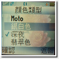 如果看膩了 MOTO 手機一貫的藍白配色介面,W220 另外提供 5 種顏色供使用者自行替換,雖然比不上高階手機自己設定的自由度,但是偶爾轉換心情也是不錯的。