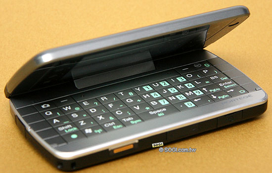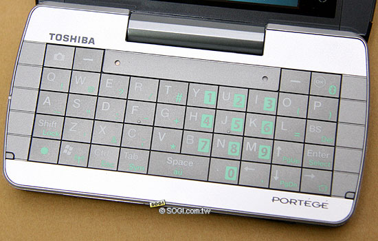 G910 在螢幕的兩側,預設了八個小圓點的觸碰式感應快捷鍵,就像 Sony Ericsson K850i 其三顆圓形觸碰鍵的操作方式類似,不過 Toshiba 是把它來拿作為八個功能的快捷鍵。左側由上至下分別為聯絡人、簡訊、上網和行事曆;右側則是工作清單、返回、檔案總管和媒體櫃。另外,視訊電話的通話鏡頭,也在手機螢幕的右側,通話時必須將手機開蓋。