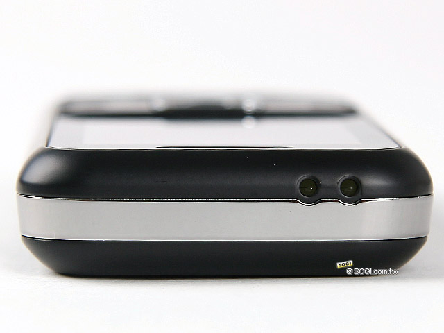 ▲Coolpad T20 機身上方的兩個不明作用孔,乍看之下以為是手機吊飾孔,透過錄音方式遮住此孔與放開此孔後錄音,音量大小因此而有所差異,所以判斷此不明孔應為收音孔。