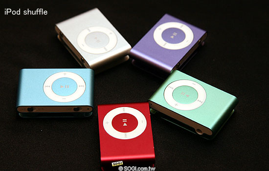 新 iPod shuffle 同樣仍只有 1GB 版本,最大的差異就是提供了銀色、紅色、藍色、綠色、紫色等五種顏色。iPod shuffle 的體積為 41.2 x 27.3 x 10.5mm、重量為 15.5g 和前一代不相上下,不過在烤漆上採用了更堅固耐磨的材質。iPod shuffle 已經上市,建議售價為 2,900 元。