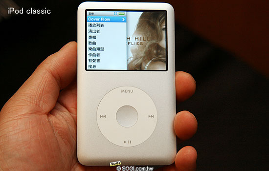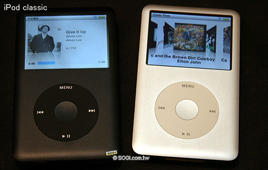 iPod classic 提供全新的 Cover Flow 功能,可以顯示該專輯的封面照片,並強化使用者介面,要比上一代更容易上手。除了聽音樂和看影片之外,iPod classic 也支援 Podcast 廣播、有聲書和小遊戲等功能。80G 和 160G 版本較大的不同,在於 80G 可以播放 30 小時的音樂和 5 小時的影片,而 160G 更播放長達 40 小時的音樂和 7 小時的影片。