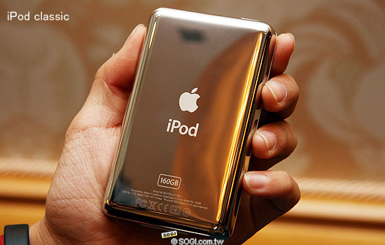 背面的不鏽鋼設計,具有鏡面的效果,不知道會不會像前一代一樣刮痕累累?也許我們買一台測了以後可以告訴大家。iPod classic 80G 版本建議售價為 8,800 元,160G 版本為 12,900 元,預計九月底開始供貨。