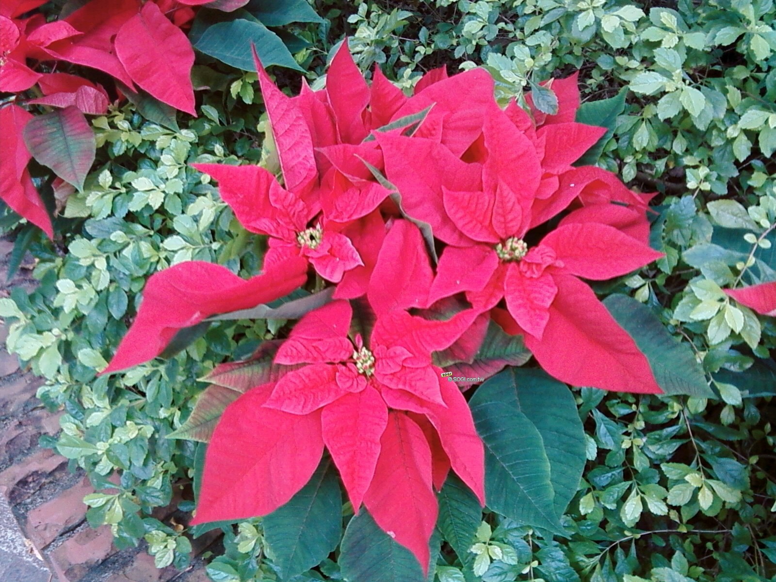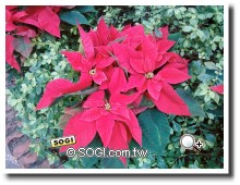 艷麗的聖誕紅是當令花卉,紅與綠的強烈對比 KE590 有捕捉到,而且枝葉的紋路都很清晰,花蕊的部分也個個分明。但是,色澤有些許偏白,實景相比不管是紅色還是綠色都稍淡。